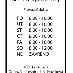 Vinylová samolepka provozní doba