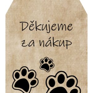 Papírová visačka s psí tlapkou, děkuji za nákup