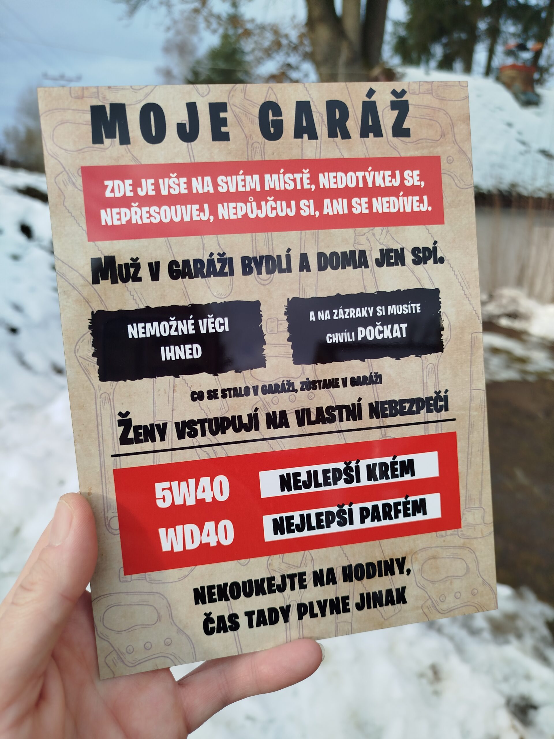 Hliníková cedule do garáže – odolná, vtipná a vytvořená sublimací pro maximální kvalitu.