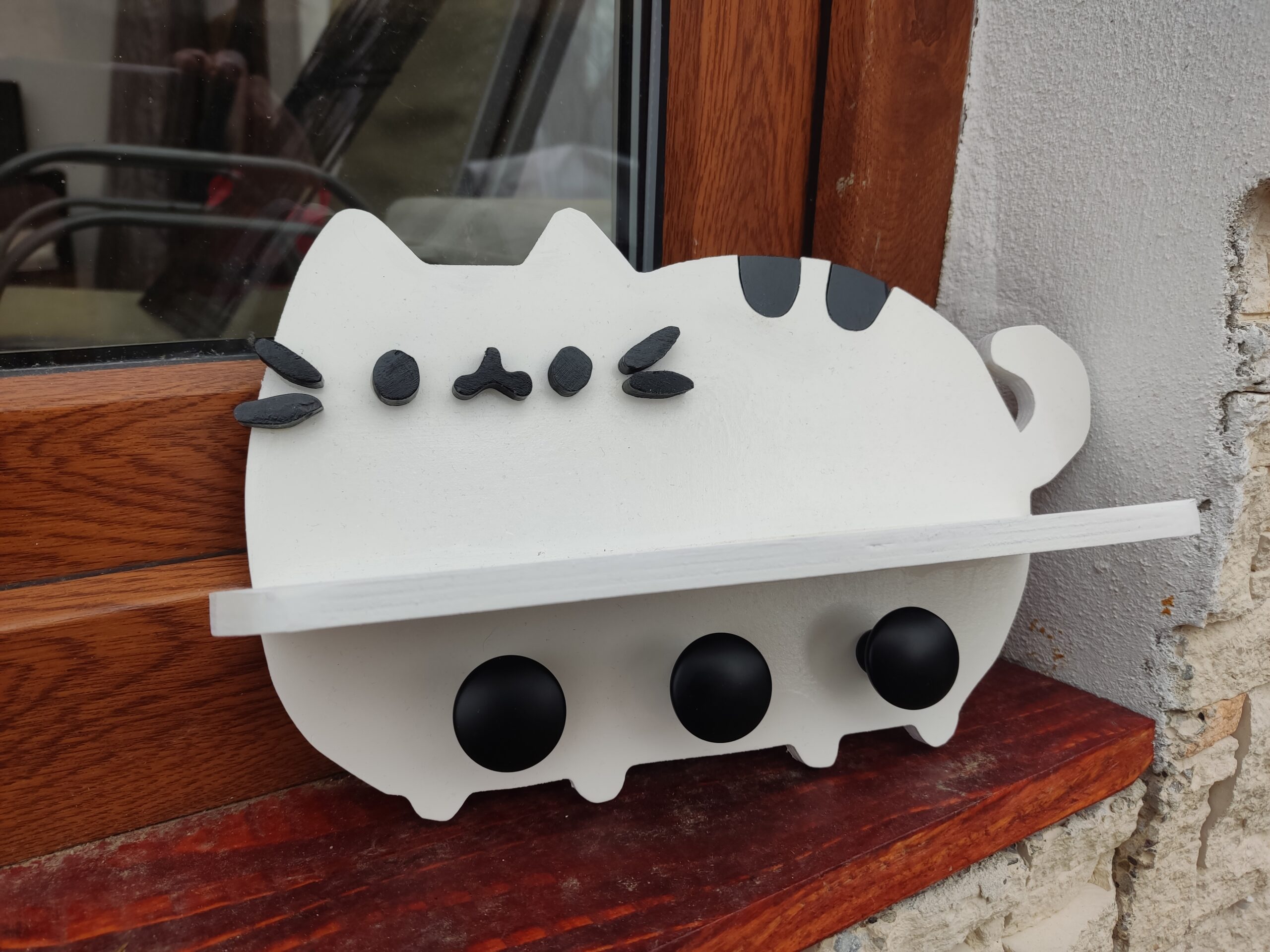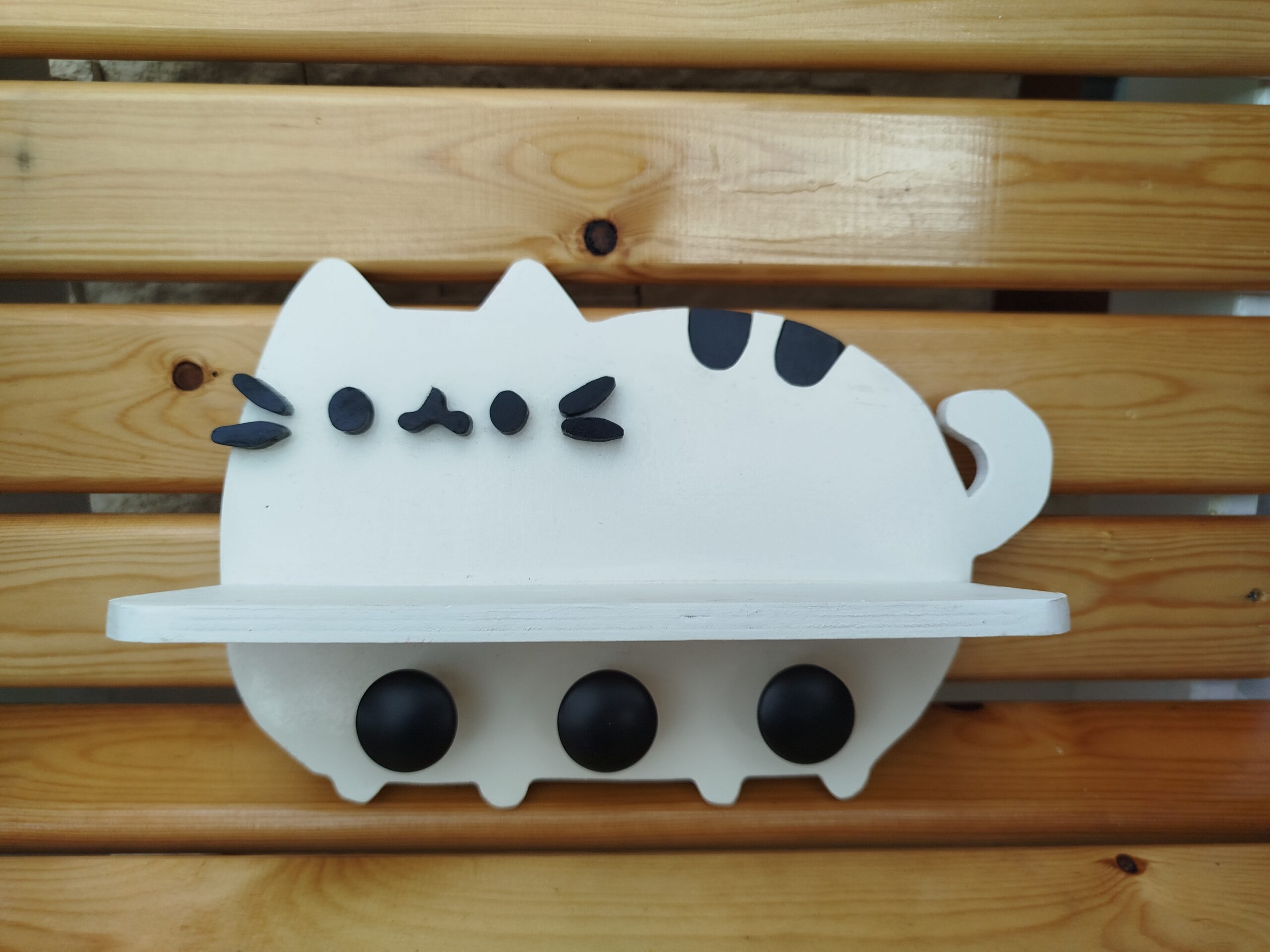 Polička kočka, vyrobena z překližky, rozměry 24×18 cm.