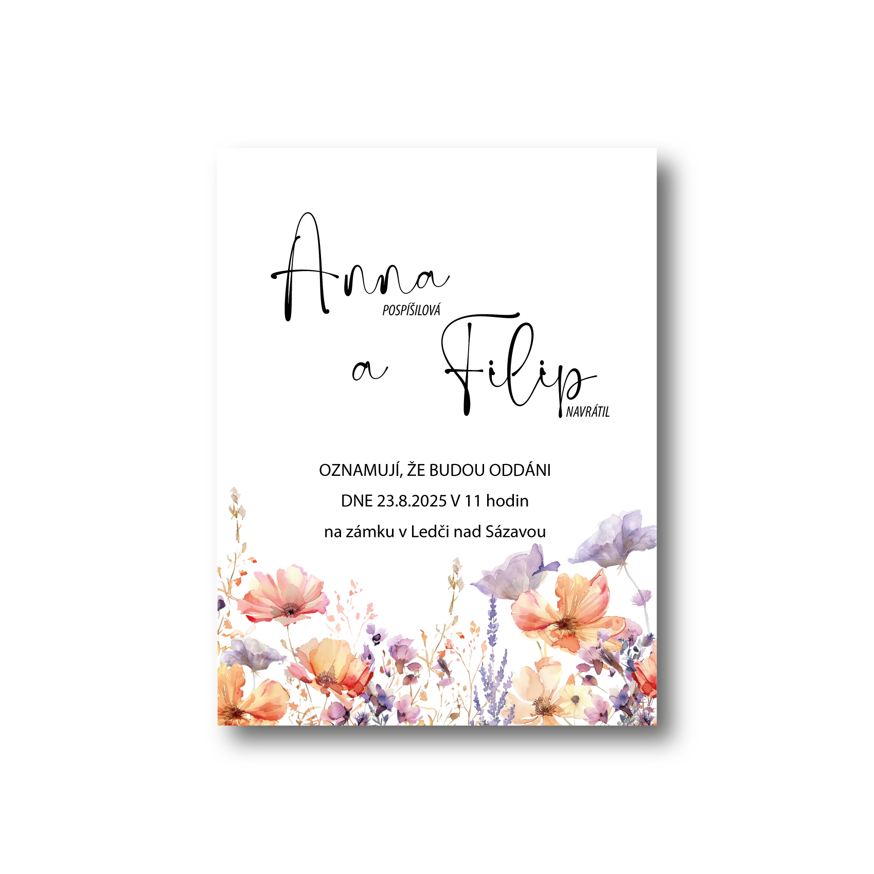 Svatební oznámení vlčí máky není jen informace, ale památka na jeden z nejkrásnějších dnů v životě. Díky pečlivému zpracování a elegantnímu designu vytvoří nezapomenutelný první dojem a navodí tu správnou svatební atmosféru.